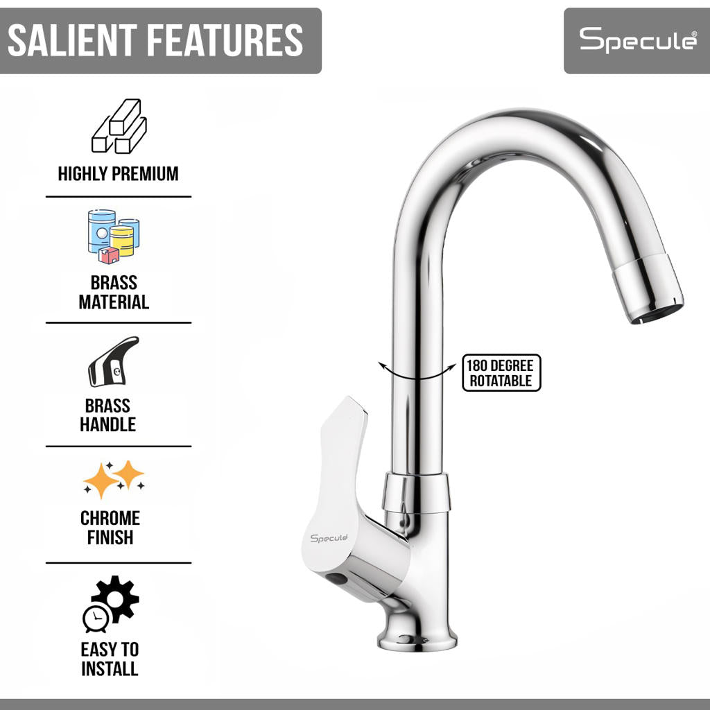 Specule Chocolate Swan Neck with Swivel Spout Faucet is meant especially for Table mount installations for Sinks/Basins and has a 360° rotating 12 inches round spout that enables you to control the direction of the water flow. Material & Finish