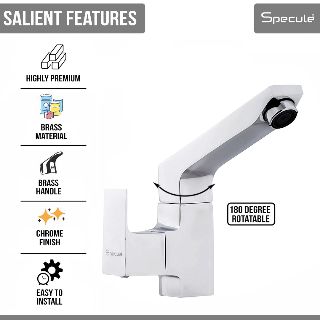 Specule Cubix Swan Neck with Swivel Spout Faucet is meant especially for Table mount installations for Sinks/Basins and has a 360° rotating 12 inches round spout that enables you to control the direction of the water flow.