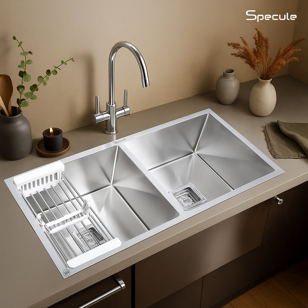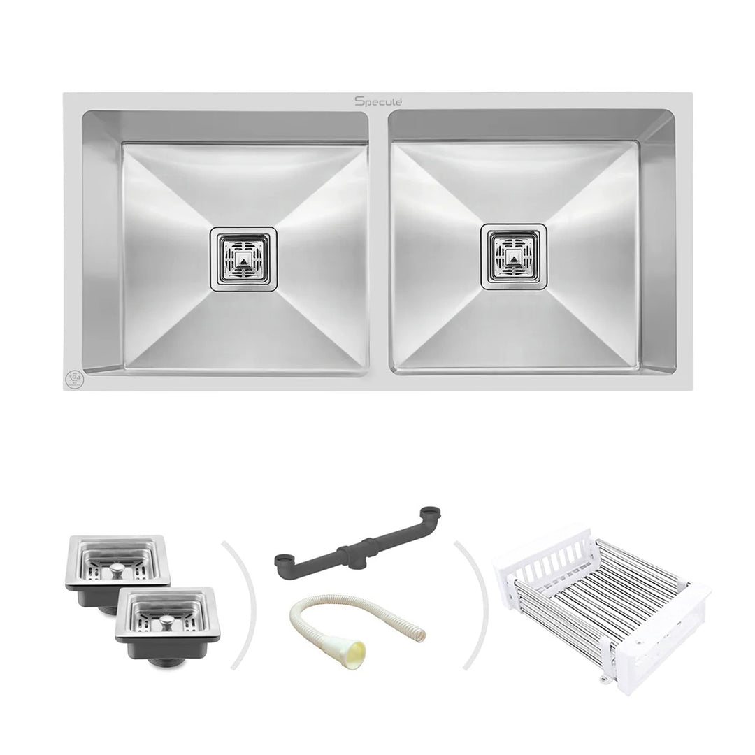 Handmade Smart Stainless Steel Double Bowl Kitchen Sink 42x20 by Specule