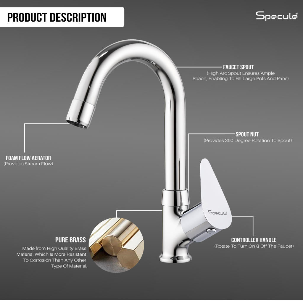 Specule Spectra Swan Neck with Swivel Spout Faucet is meant especially for Table mount installations for Sinks/Basins and has a 360° rotating 12 inches round spout that enables you to control the direction of the water flow. Material & Finish