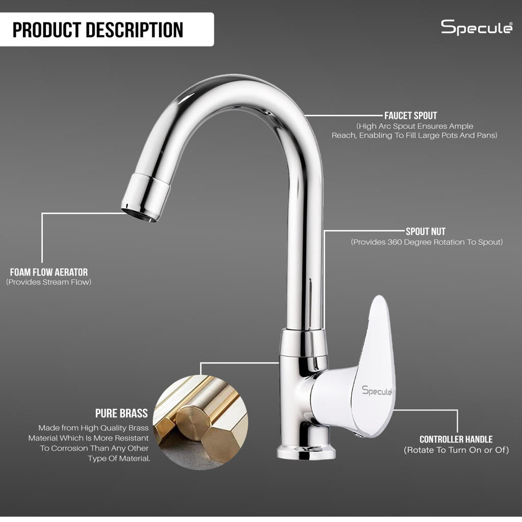 Specule Softy Swan Neck with Swivel Spout Faucet is meant especially for Table mount installations for Sinks/Basins and has a 360° rotating 12 inches round spout that enables you to control the direction of the water flow. Material & Finish